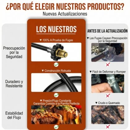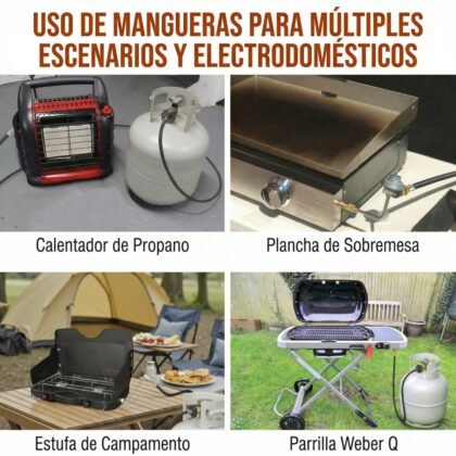 Compatibilidad Absoluta: El verdadero “todoterreno” de los accesorios. Funciona a la perfección con estufas de campamento Coleman, planchas Blackstone, parrillas Weber Q y calentadores de la serie Buddy. Si usa una rosca de 1 lb, esta manguera lo alimenta.