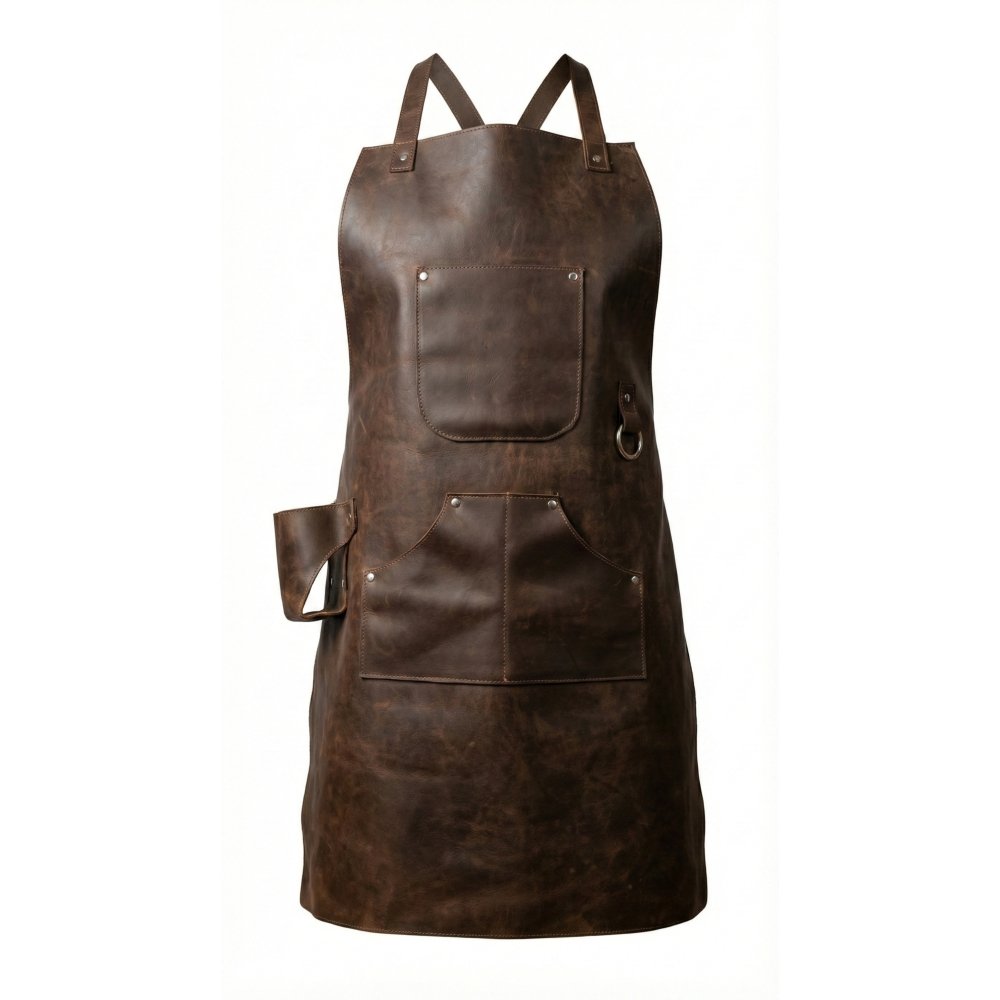 🛡️ Piel Genuina de Alto Calibre: Grueso, flexible y con ese aroma inconfundible a cuero real. Ofrece una barrera térmica natural contra el calor de la parrilla, las salpicaduras de grasa y las chispas del carbón.