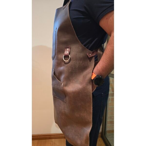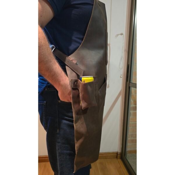 🛡️ Piel Genuina de Alto Calibre: Grueso, flexible y con ese aroma inconfundible a cuero real. Ofrece una barrera térmica natural contra el calor de la parrilla, las salpicaduras de grasa y las chispas del carbón.