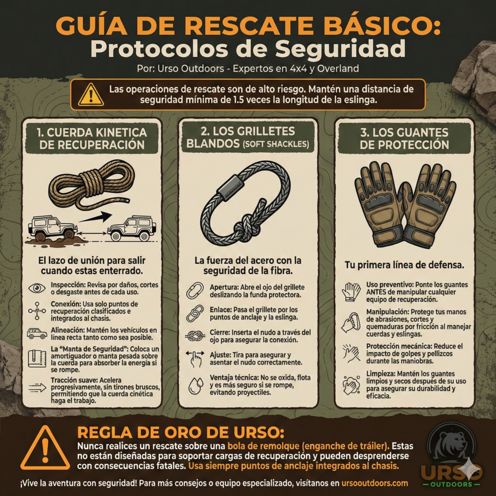 En el mundo del 4×4 y el Overland, no se trata de si te vas a quedar atrapado, sino de cuándo pasará. Para esos momentos, la diferencia entre una anécdota divertida y un problema serio radica en el equipo que llevas. En Urso Outdoors, hemos diseñado este kit con los tres elementos básicos que todo aventurero debe dominar y portar.