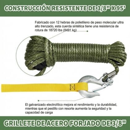 Diámetro: 3/8″ (Compatible con la mayoría de winches de 9,000 a 12,000 lbs).