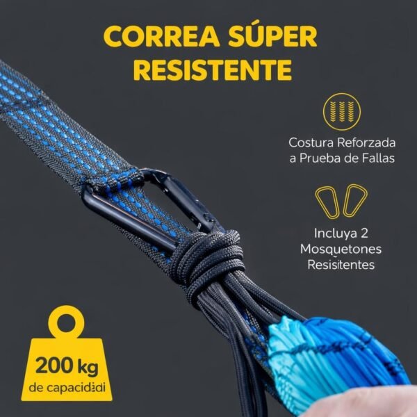 Incluye: Mosquetones de alta resistencia y cuerdas de grado náutico/correas de ajuste rápido.