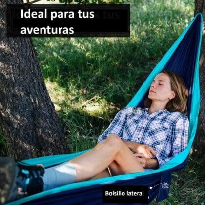 Nuestra hamaca fue diseñada pensando en que la puedas llevar a todas partes, por eso es el accesorio perfecto para tus aventuras al aire libre. Su diseño compacto y ligero hace que sea muy fácil de empacar y llevar contigo. Además, con la bolsa integrada y el bolsillo pequeño, puedes tener tu celular, billetera o botella de agua a la mano.