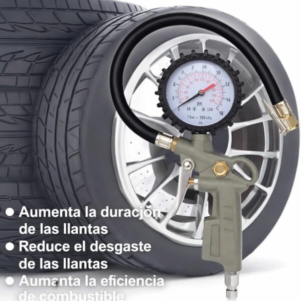 2. Construcción “Heavy Duty”: Olvídate de los accesorios de plástico que se rompen al primer golpe. Este inflador cuenta con una manguera de caucho reforzado y conexiones de latón sólido, diseñadas para resistir la fricción y las altas temperaturas que genera el aire comprimido.