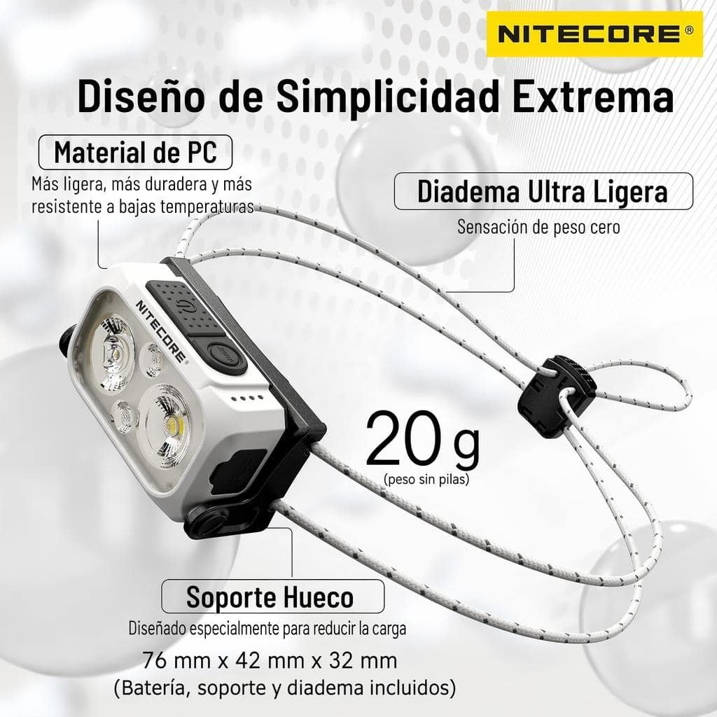 En el mundo del outdoor, cada gramo cuenta. La Nitecore NU21 ha sido diseñada para quienes buscan el máximo rendimiento sin sacrificar comodidad. Con una estructura minimalista y una potencia sorprendente, esta linterna frontal es tan liviana que olvidarás que la llevas puesta, permitiéndote concentrarte únicamente en el camino.