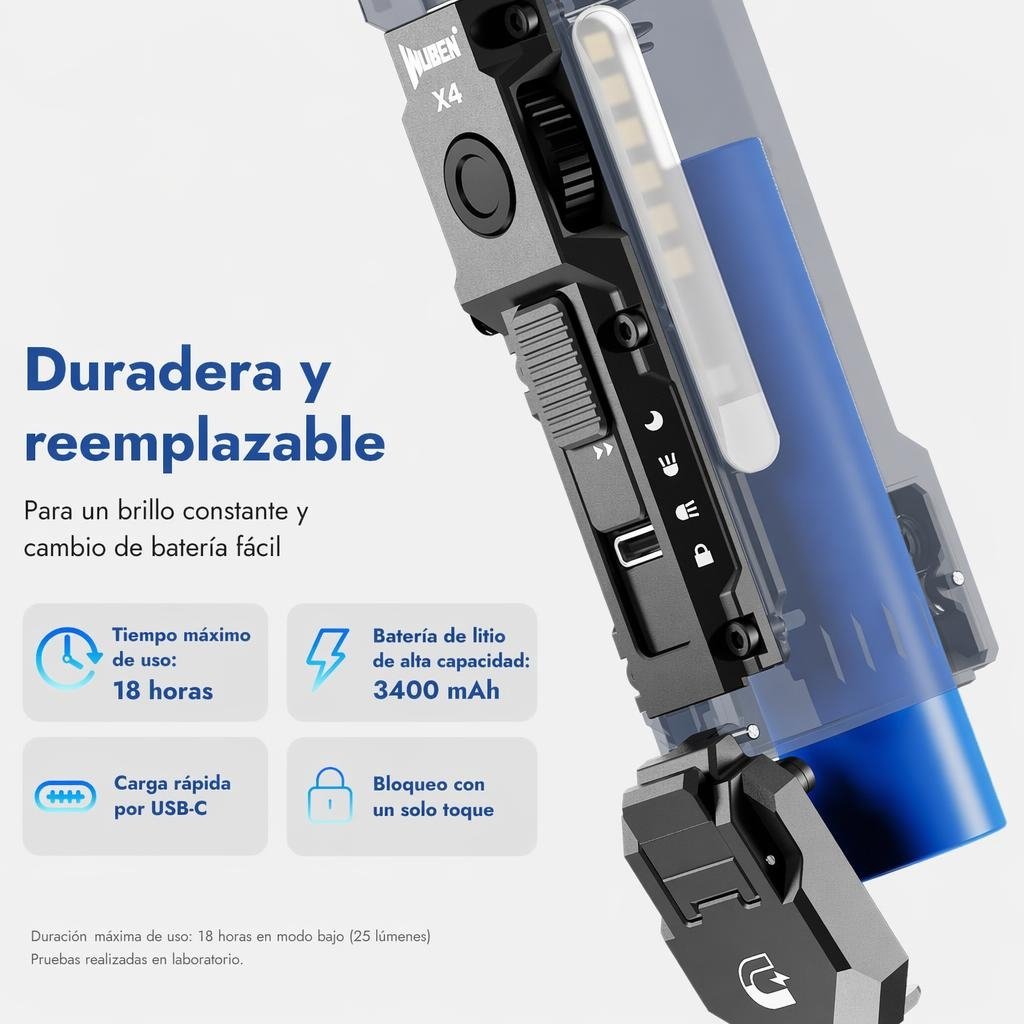 La WUBEN X4 es para quienes valoran la independencia y el diseño funcional. Ya sea que estés explorando una cueva, arreglando un pinchazo o simplemente buscando las llaves bajo la carpa, esta linterna es la compañera que nunca te deja a oscuras.