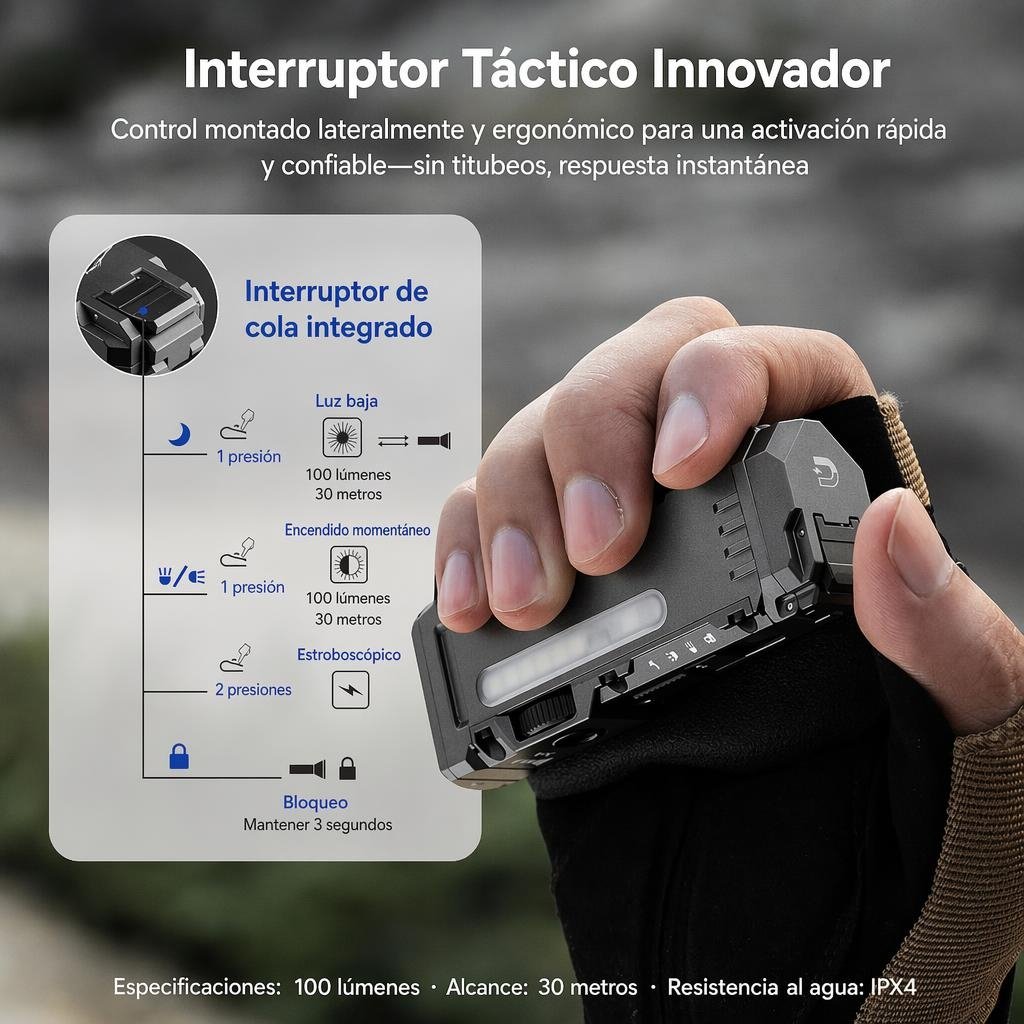 Clip de Doble Vía: Sujeta la linterna a la visera de una gorra, a las correas MOLLE de tu morral o al bolsillo del pantalón con total seguridad.