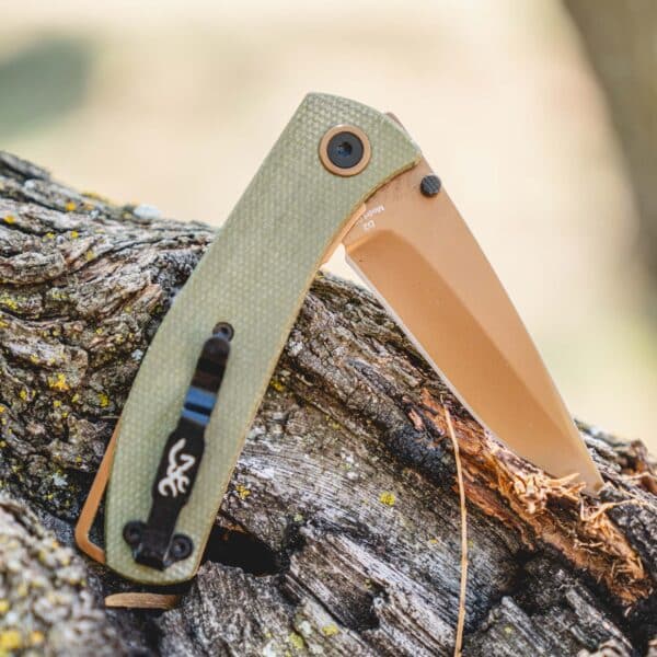 - Hoja de acero D2 con alto contenido de carbono y acabado de titanio