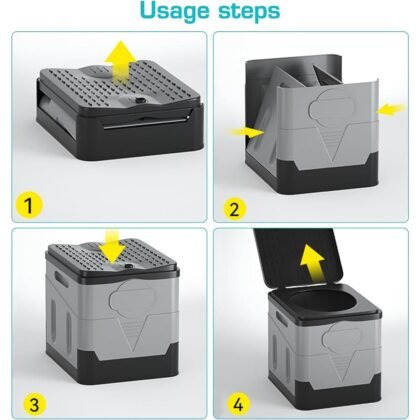 Facil de limpiarLas bosas de basura junto con el gel absorvente recomendado, retienen el 99% de los liquidos y solidos, pero si por alguna razon se riegan el sanitario se puede desarmar para lavarlo facilmente. |