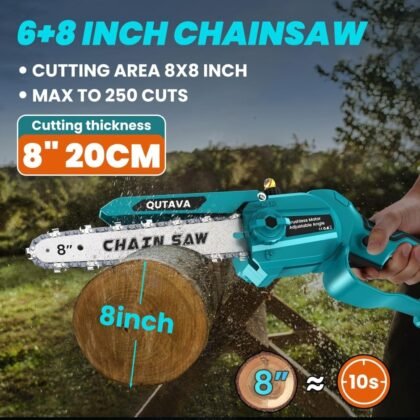 6 pulgadas y 8 pulgadas, corte eficiente: Esta motosierra manual está hecha de cadena guía súper dura, reforzada para un corte suave. El motor se ha mejorado y la potencia es un 50% más que la mini motosierra tradicional. La velocidad de la cadena alcanza los 12 m/s, equipada con guías de 6 pulgadas y 8 pulgadas, un total de 4 cadenas, que se pueden reemplazar en cualquier momento, la eficiencia de trabajo es 10 veces mayor.